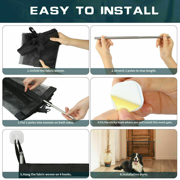 Safeguard your pets with this clever retractable mesh barrier that offers convenience and style, effortlessly fitting in any doorway or stairwell while keeping your furry friends contained.